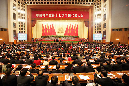 10月21日九時(shí),中國共產(chǎn)黨第十七次全國代表大會(huì)閉幕會(huì)開始在北京人民大會(huì)堂舉行。