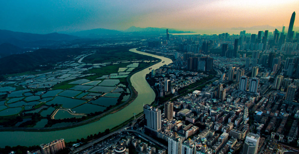 無人機拍攝的深圳和香港落馬洲河套地區(qū)及周邊風(fēng)光(2018年5月23日攝)。新華社記者 毛思倩 攝