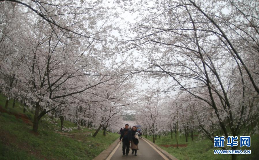 春季里,貴州省貴安新區(qū)紅楓湖畔的櫻花園內(nèi)櫻花綻放,花海如云似雪,吸引游人踏春賞櫻。
