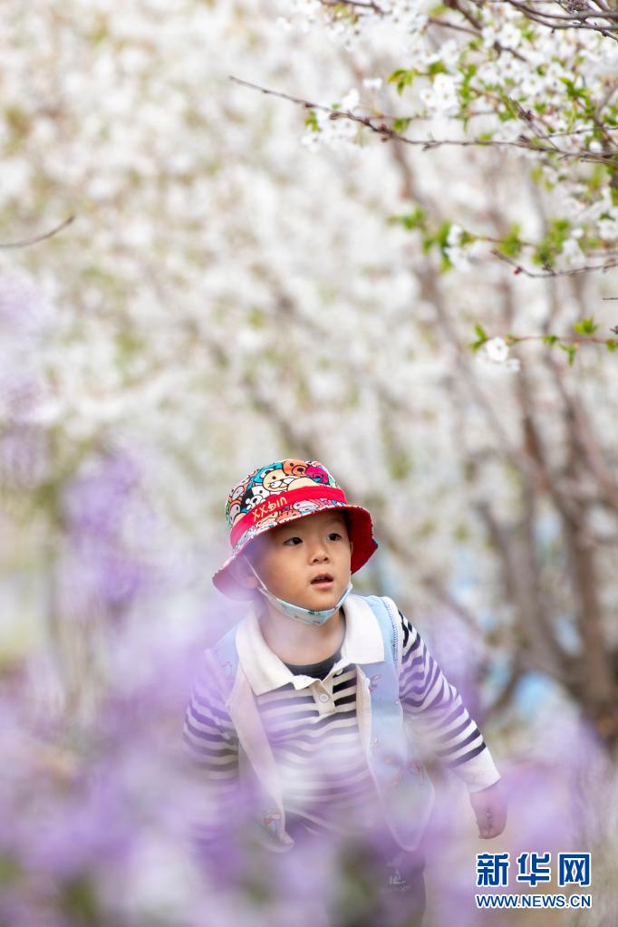 4月7日,小朋友在山西省太原市玉泉山城郊森林公園賞花。近日,山西省太原市玉泉山城郊森林公園栽植的近25萬株各類櫻花競(jìng)相盛開,吸引不少市民前來觀賞。新華社記者 楊晨光攝
