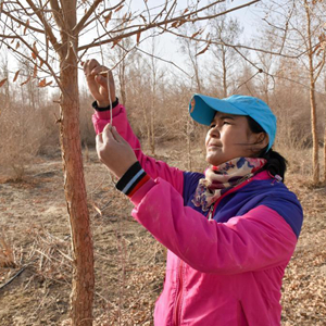 邊種樹、邊研究,帕提古麗和同事實踐了滴灌節(jié)水技術(shù)、草方格固定、栽植抗旱樹種、防沙林綁草護(hù)苗……沙漠里的樹木成活率不斷提升,生態(tài)環(huán)境不斷變好。