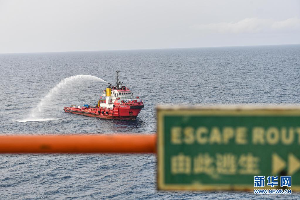 4月25日,為中國海油樂東15-1氣田運送物資的拖船在南海北部海域參與該氣田舉行的應(yīng)急演練。