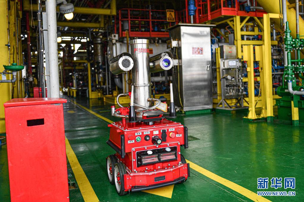 4月25日,巡檢機(jī)器人在中國海油樂東15-1氣田上進(jìn)行巡檢作業(yè)。