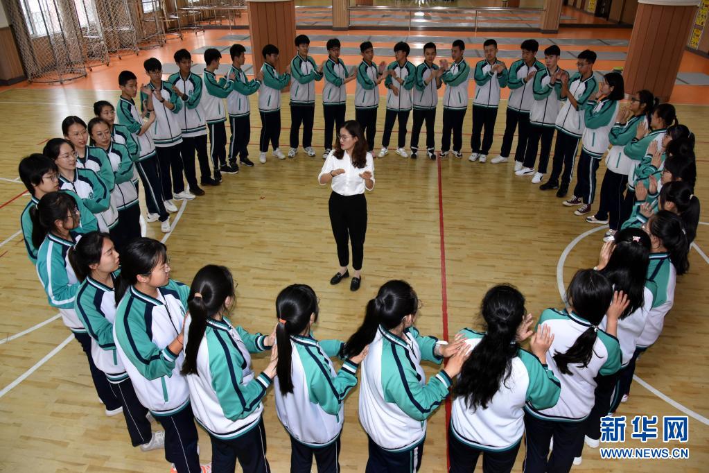 5月23日,青島通濟實驗學校高三學生在進行“激情節(jié)拍”游戲。