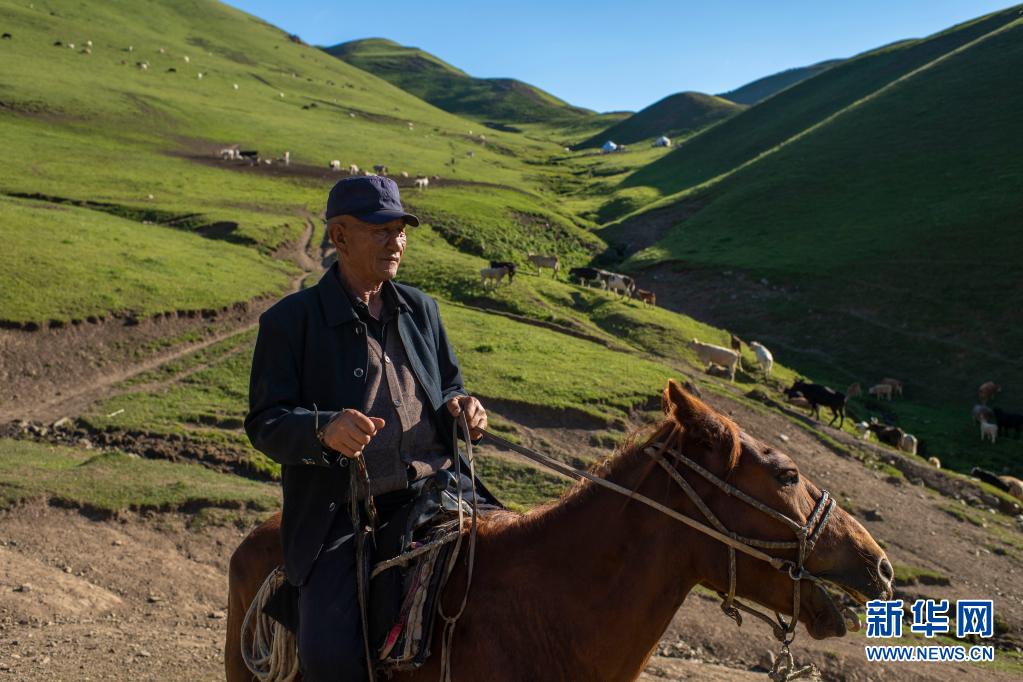 新疆裕民縣的牧民在巴爾魯克山區(qū)夏牧場(chǎng)上放牧(6月15日攝)。