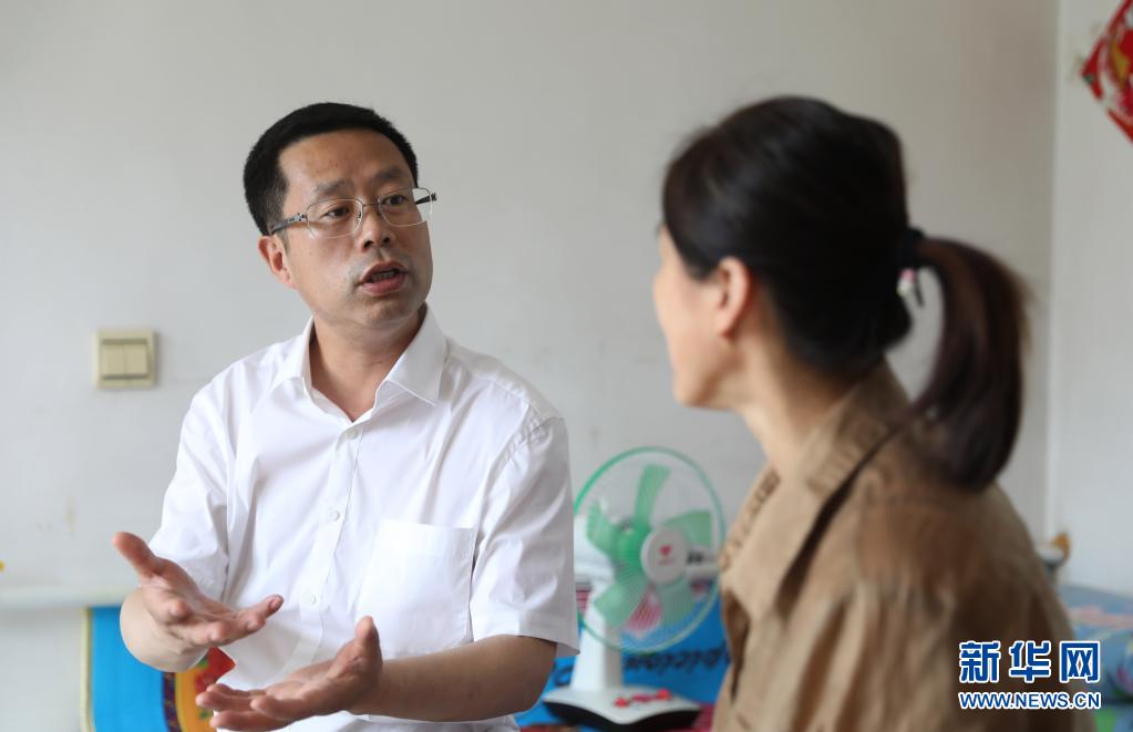 7月2日,在沈陽市沈北新區(qū)興隆臺(tái)街道單家村,聞然(左)與村民交談。新華社記者 楊青 攝