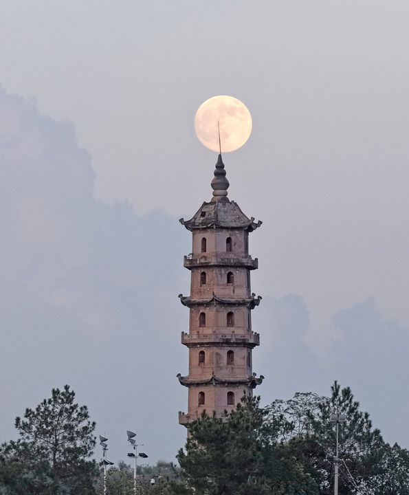 2025年10月6日在浙江省台州市仙居县拍摄的中秋满月(无人机照片)。新华社发(王华斌摄)