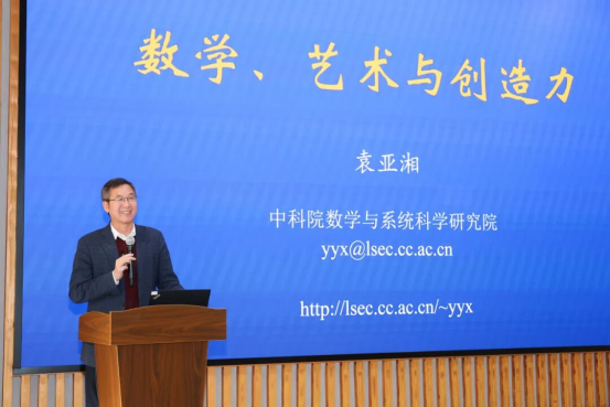 “在多数人认知里,数学是严谨枯燥的逻辑符号,艺术是自由奔放的感性表达,二者仿佛分处两极。”袁亚湘院士开篇直击大众固有印象,随即抛出核心观点:“实则数学与艺术早已深度交融,暗藏着创造力的底层逻辑。”讲座中,他从音乐的韵律节拍、建筑的空间结构,到雕塑的几何形态、绘画的色彩分布,再到舞蹈的肢体轨迹、文学影视的叙事逻辑,通过一系列经典案例抽丝剥茧,将黄金分割、分形几何、对称原理等抽象数学概念,转化为可感知的艺术表达,生动揭示了二者相辅相成的深刻联结。幽默风趣的讲述风格,让理性的数学知识染上艺术温度,悄然打破了横亘在人们心中的学科壁垒。