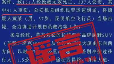 近日,有網(wǎng)民散布虛假的“警情通報(bào)”,造謠傳播云南昆明交通事故“致131人死亡,337人受傷”等不實(shí)信息,公安機(jī)關(guān)核查后,依法對造謠者進(jìn)行了刑事拘留。“藍(lán)底白字”的“警情通報(bào)”是公安機(jī)關(guān)權(quán)威發(fā)布的重要渠道。不法分子竟敢冒用官方標(biāo)識(shí),將“2死9傷”惡意篡改成“131人死亡、337人受傷”,并編造聳人聽聞的細(xì)節(jié),真是膽大包天!