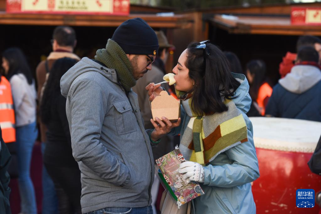 2月4日,在西班牙马德里,当地民众参加中国庙会。