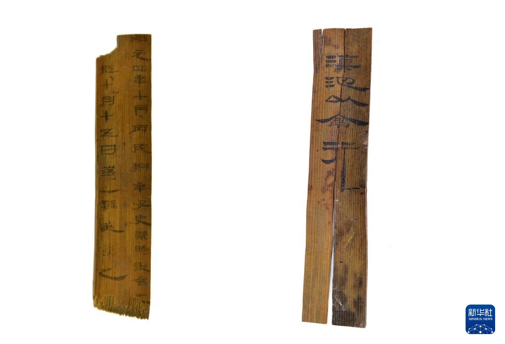 云南昆明市河泊所青铜时代遗址出土的简牍(拼版照片)。