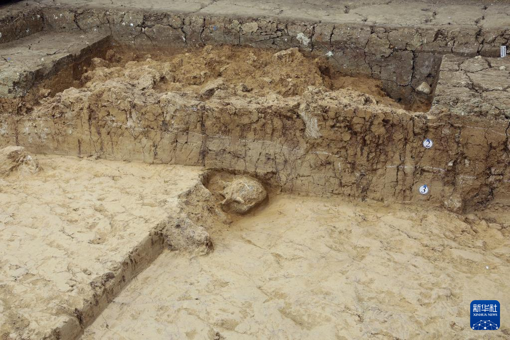 殷墟东围沟内祭祀坑K23上层发掘情况(资料照片)。
