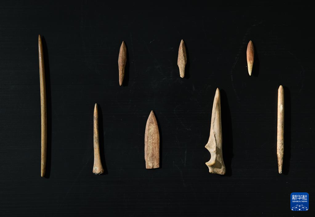 这是甘肃庆阳市南佐新石器时代遗址内出土的部分骨器(2022年8月25日摄)。