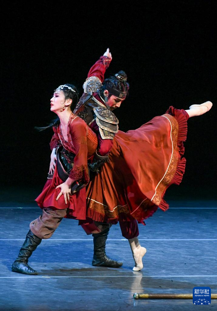 2月28日,在乌鲁木齐京剧院,演员在表演舞剧《五星出东方》。