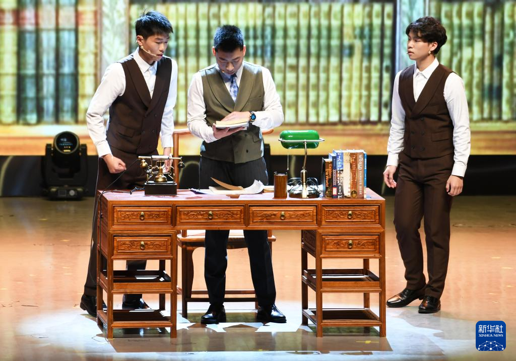 当日,由108名北京交通大学机电学院在读学生表演的原创话剧《中国机车先驱》在校内天佑会堂公演。据了解,该话剧情景再现了我国第一台大马力蒸汽机车设计者及监造者应尚才教授的人生轨迹,反映其“爱路报国”的精神追求。
