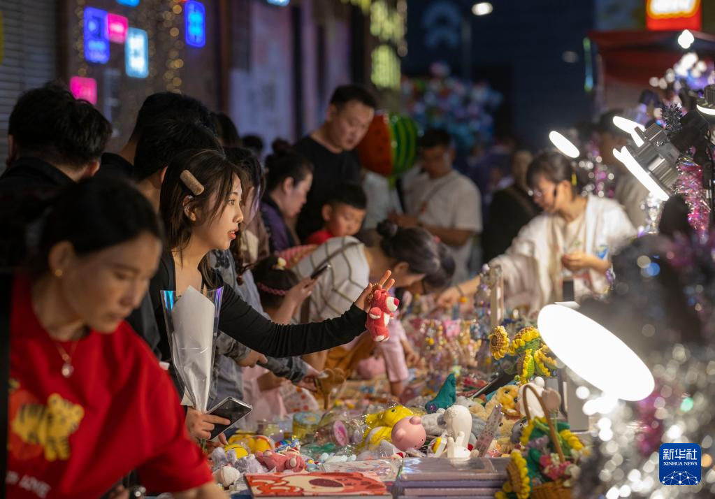 湖南长沙,线上,五一档影片《长沙夜生活》正在热映;线下,一个“电影平行时空市集”在湘江边的北辰三角洲同步举办,许多年轻游客前来沉浸式地体验电影中同款场景。