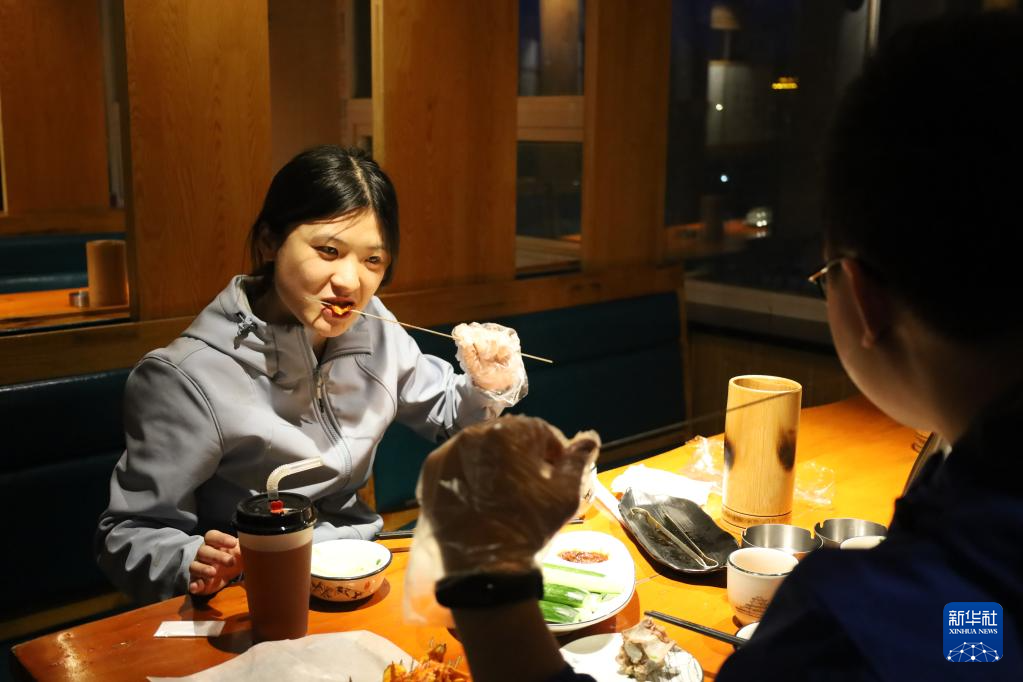 5月12日,游客在嘉峪关市的一家烤肉店吃烤肉。