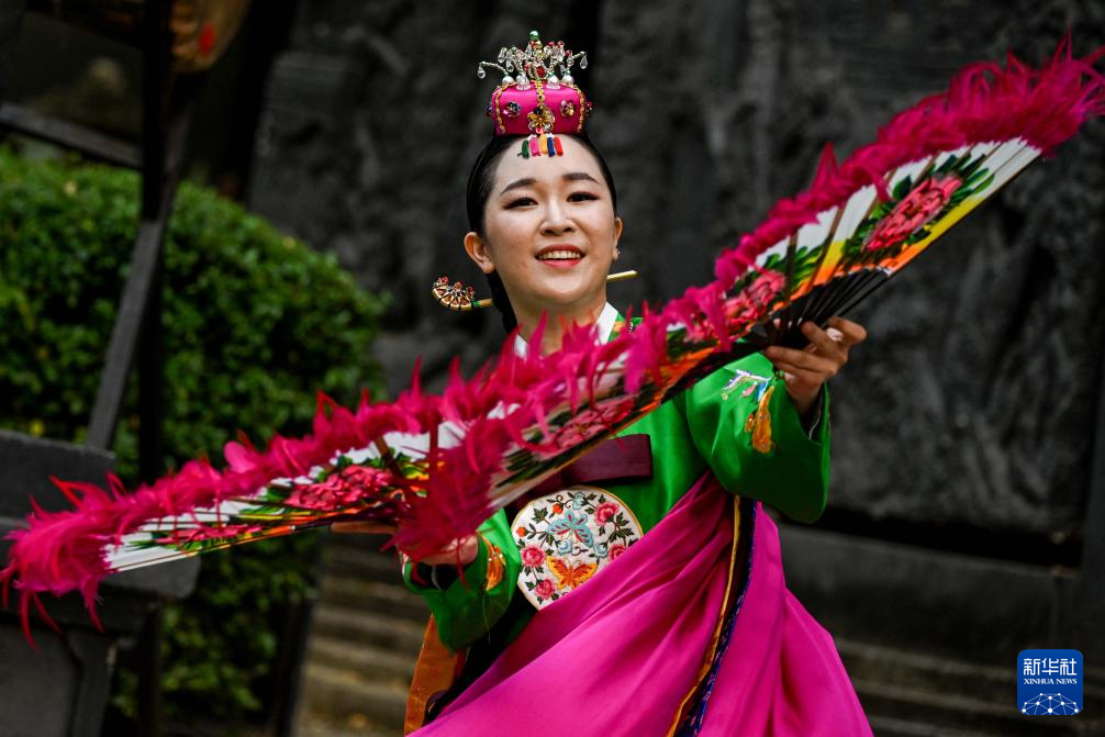 8月23日,在印度尼西亚南唐格朗,来自韩国的舞者表演传统舞蹈。