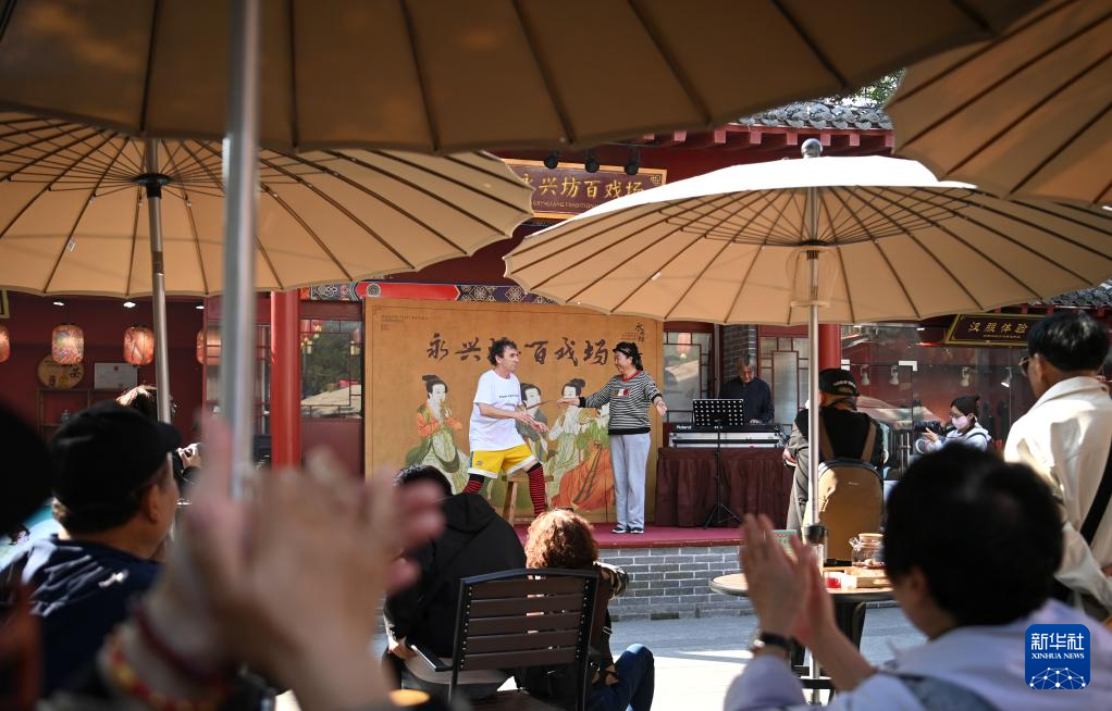10月16日,观众在西安永兴坊欣赏默剧表演。