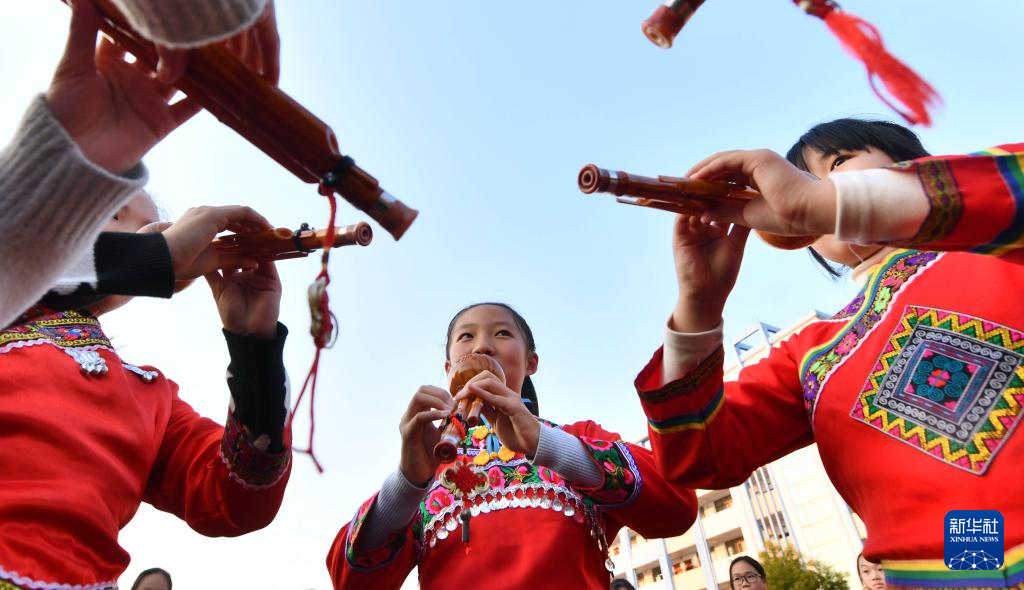 近年来,广西柳州市在开展民族团结进步文化进校园活动中,将葫芦丝、竹竿舞、芦笙、书法、山歌等传统文化引进课堂,让孩子们在传承优秀中华文化的同时,接受民族团结进步教育,铸牢中华民族共同体意识。