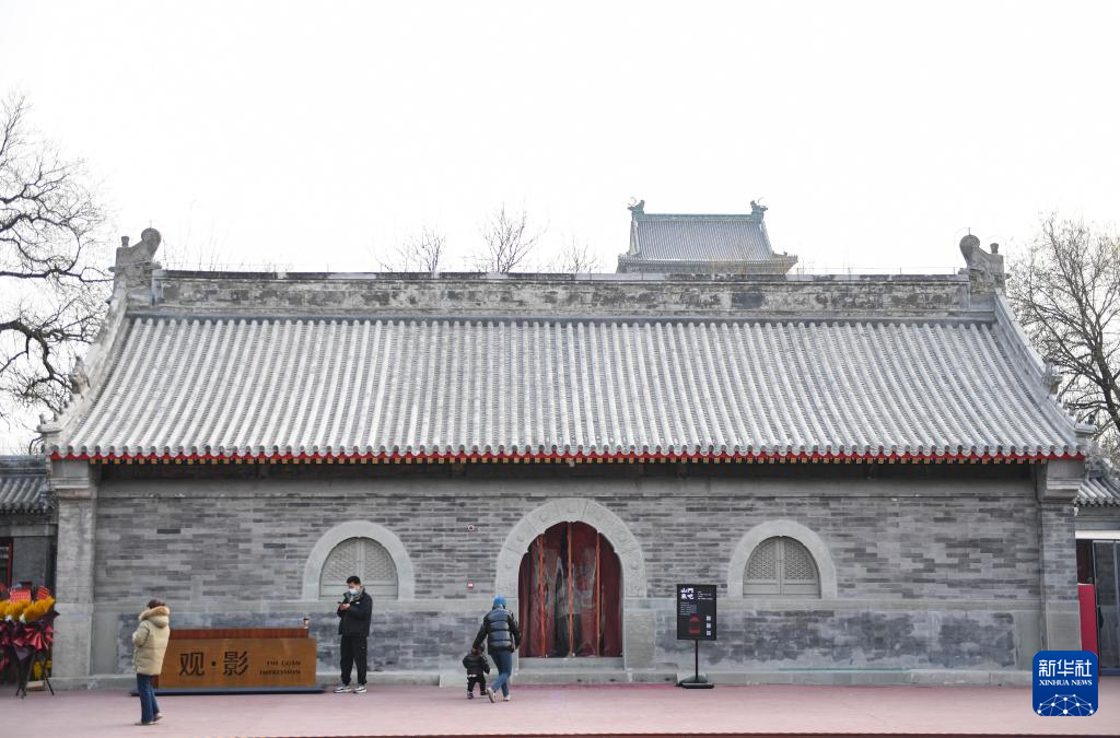 1月18日,人们在宏恩观大雄宝殿内观看“宏恩观:一座北京庙宇的故事”主题展览。
