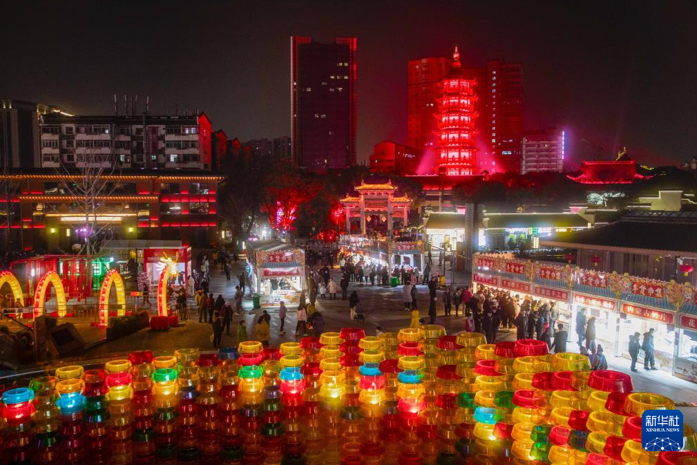 1月27日,第二十届南昌绳金塔庙会开幕,市民们游览夜市,买年货,看花灯,迎接新春到来。