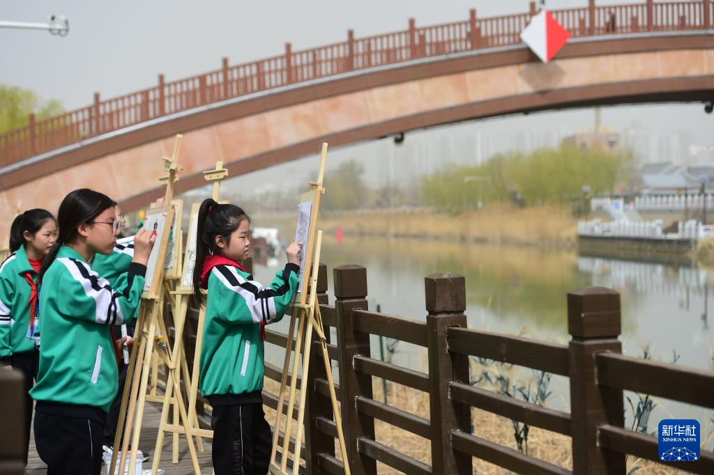 当日,由河北沧州百狮园公园、沧州中西医结合医院南川老街国医堂主办的“春到运河美,传统文化润童心”公益研学活动在古运河畔举办,孩子们通过各种方式了解运河历史,感知传统文化魅力。