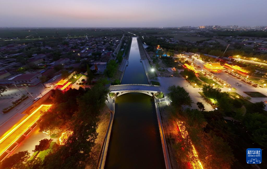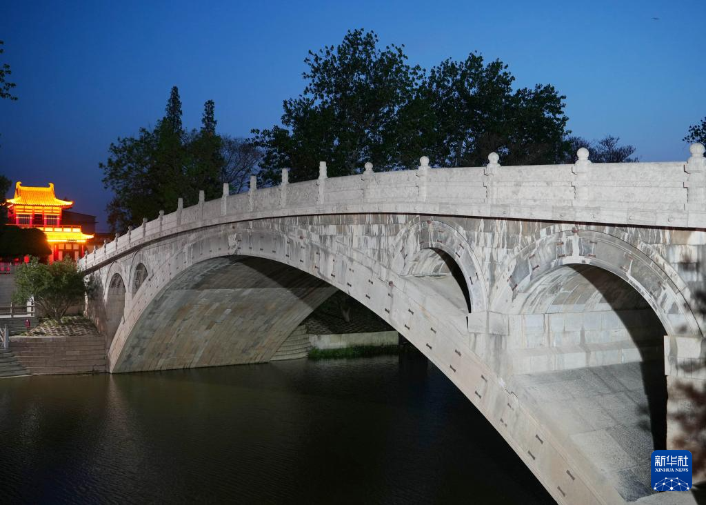 夜幕下的赵州桥(4月24日摄,无人机照片)。