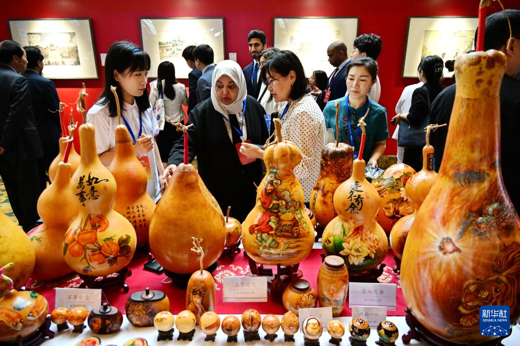 6月19日,与会者在亚洲文化遗产保护联盟理事会第二次会议的非遗展区参观。