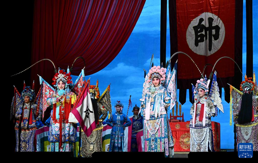11月1日晚,国家京剧院演员在石家庄人民会堂表演京剧《穆桂英挂帅》。