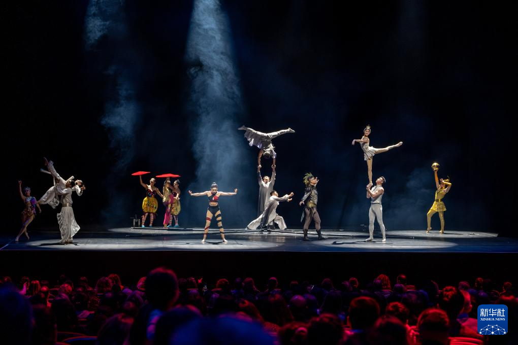 11月22日,在希腊雅典举行的第二届中希国际戏剧节上,广州杂技团演员表演杂技《球技-金色畅想》。