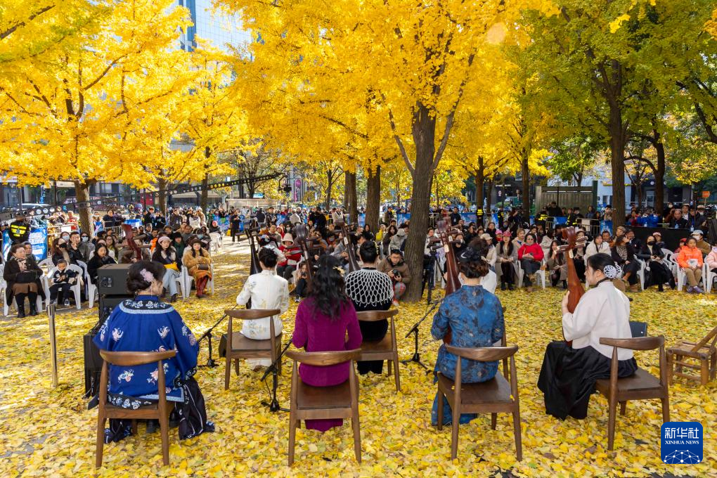 当日,一年一度的“银杏音乐会”在上海音乐厅南广场举行。在银杏树下,音乐家们倾情演绎,为市民带来沉浸式海派情境艺术盛宴。