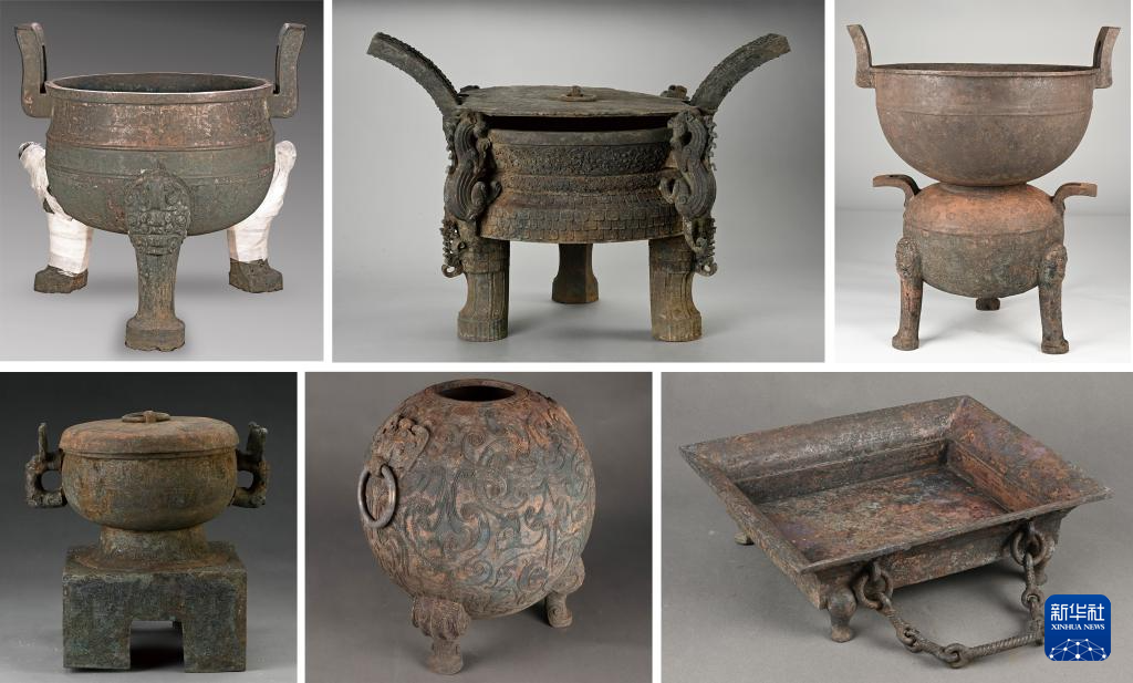 安徽淮南武王墩一号墓出土的铜器(拼版照片,资料照片) 。新华社发(考古杂志社供图)