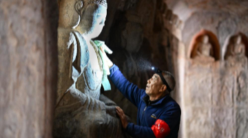 4月5日,在奥地利首都维也纳,演员在婺剧《白蛇传》演出前准备。