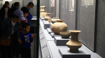 5月10日,在罗马尼亚克卢日-纳波卡,选手在第24届“汉语桥”世界大学生中文比赛罗马尼亚赛区决赛上展示书法作品。