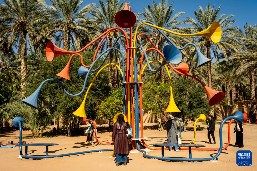 1月16日,人们在沙特阿拉伯欧拉观赏艺术装置。