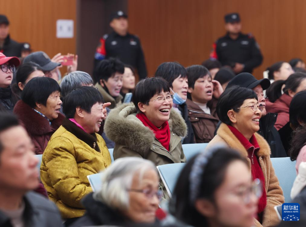 1月22日,当地百姓在周巷镇万安庄村文化礼堂“我们的村晚”交响音乐会演出现场观看演出。