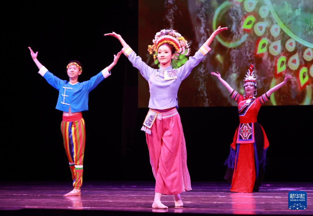 2月4日,在吉尔吉斯斯坦首都比什凯克举行的“欢乐春节”文艺演出上,演员表演舞蹈《采茶》。