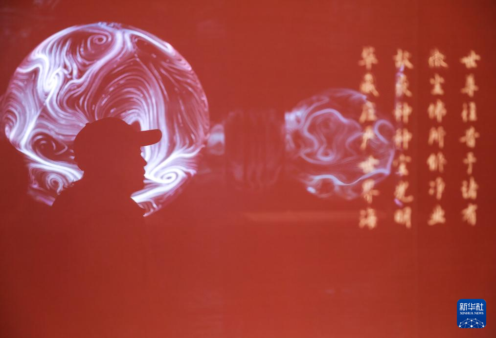 2月27日,参观者在“既往未来——小西天文物撷珍与悬塑艺术特展”的“无量之境”展台拍摄。