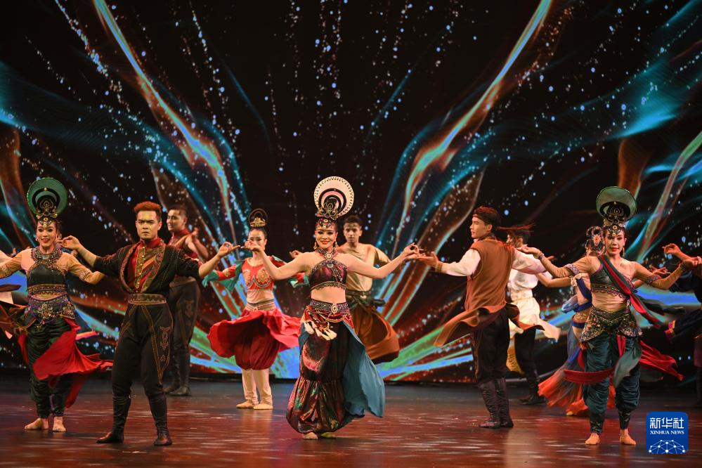 2月28日,演员在大型乐舞诗《杏花之约·丝路龟兹》中表演。