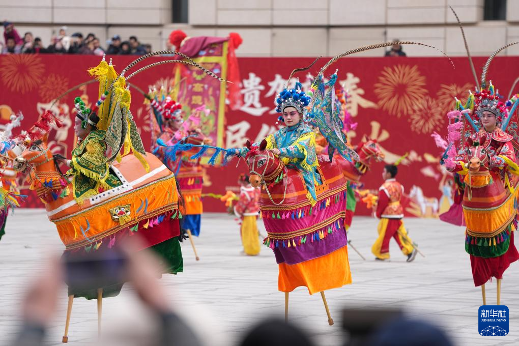 2月28日,观众在观看来自山西的寿阳高跷竹马展演。