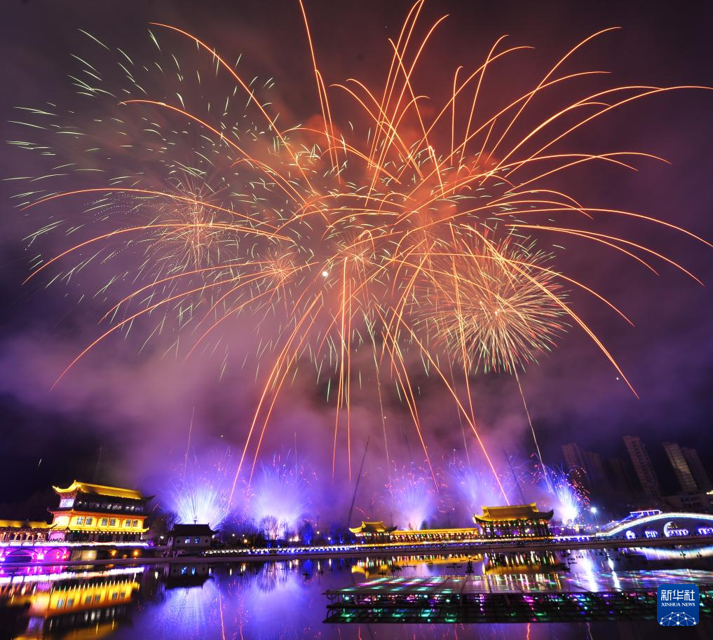 这是3月1日在甘肃省临夏回族自治州和政县拍摄的焰火表演。