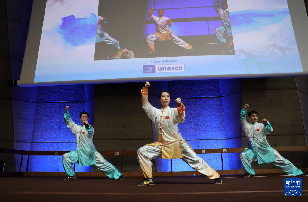 当地时间3月18日,首个“国际太极拳日”即将到来之际,以“健康生活,太极同行”为主题的庆祝活动在法国巴黎联合国教科文组织总部举行。来自中法两国的太极拳习练者同台献艺,展现太极拳的独特魅力与深厚内涵,向世界传播中华优秀传统文化和科学健康的生活方式。