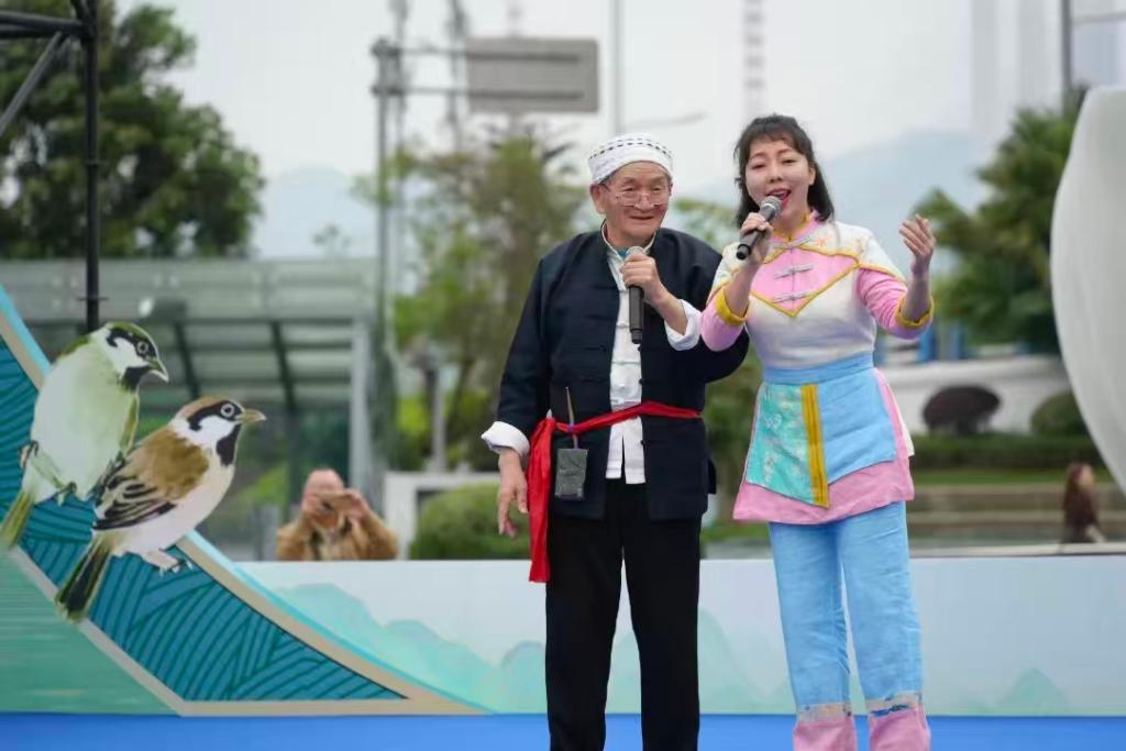 春日重庆,一场以木洞山歌为主题的“麻雀艺评”基层文艺评论活动在巴南区李家沱街道山茶花广场热闹开展——