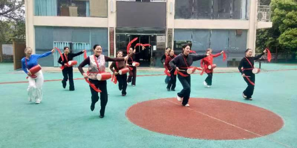 图为重庆巴南区东温泉镇居民在练习腰鼓。(受访者供图)