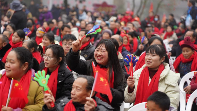 Villagers enjoy Spring Festival gala in Shenshan Village, China's Jiangxi