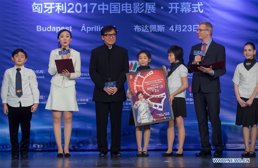 BUDAPEST, April 23 (Xinhua) -- The 2017 Chinese Film Festival started here on Sunday with presence of world famous film star Jackie Chan and five movies, one of which is Jackie Chan's latest production, Kung Fu Yoga.
