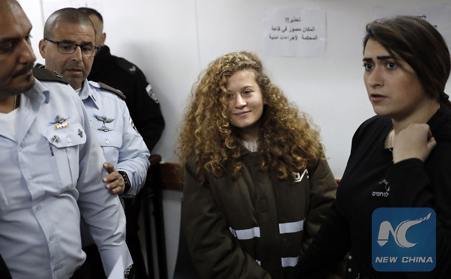 RAMALLAH, Feb. 13 (Xinhua) -- The detention of a Palestinian teenager, who slapped an Israeli soldier, was extended on Tuesday for one month, according to an Israeli military court order.