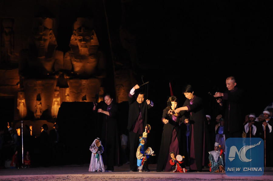 ASWAN, Egypt, Feb. 23 (Xinhua) -- The Sun Festival of Abu Simbel temple in southern Egypt this year has brought Chinese festivity to the ancient land of Nubians, as Chinese puppetry show has joined the international celebration event for the first time.