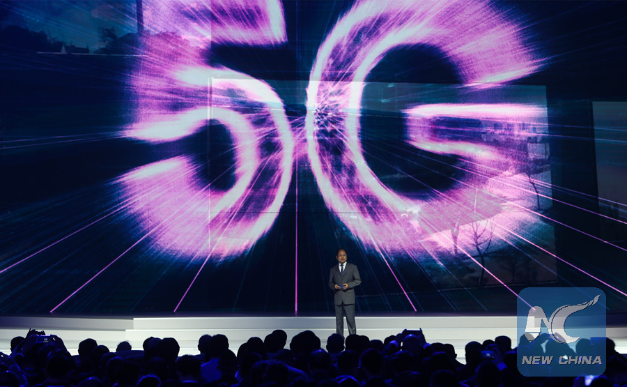 File photo taken on Dec. 3, 2017 shows Xu Zhijun, Huawei's rotating CEO, introduces achievements of 5G technology during the release ceremony for world leading Internet scientific and technological achievements in Wuzhen, east China's Zhejiang Province. (Xinhua/Zheng Huansong)